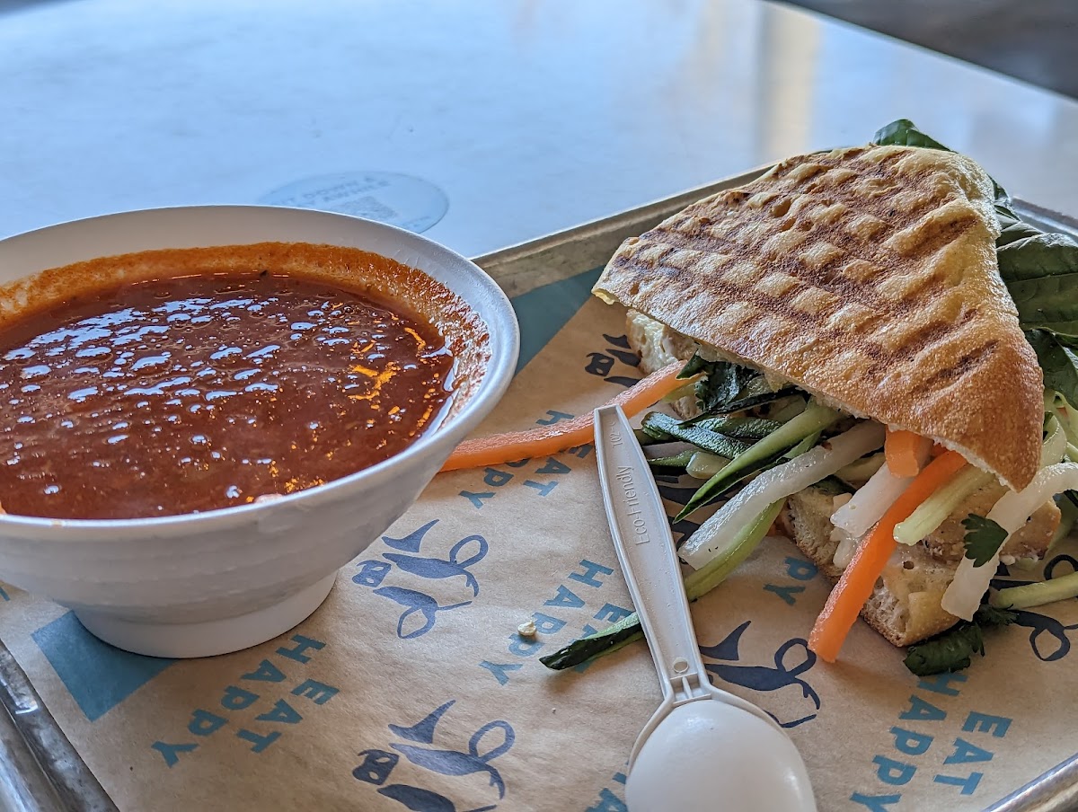 When it comes to menu highlights, much to explore! Signature dishes such as the decadently flavorful Not So Fried Chicken Sandwich (offered salad-style!) or the creatively crafted Banh Mi sandwich are just the tip of the iceberg. You can also indulge in a refreshing Thai Mango Salad or the rich and satisfying Tomato Basil Soup—a personal favorite amongst patrons for its smooth texture and deep savory notes. For a touch of excitement, don't miss the seasonal Hatch Chile Corn Soup, which has received rave reviews and is best enjoyed with one of their half sandwich combos.